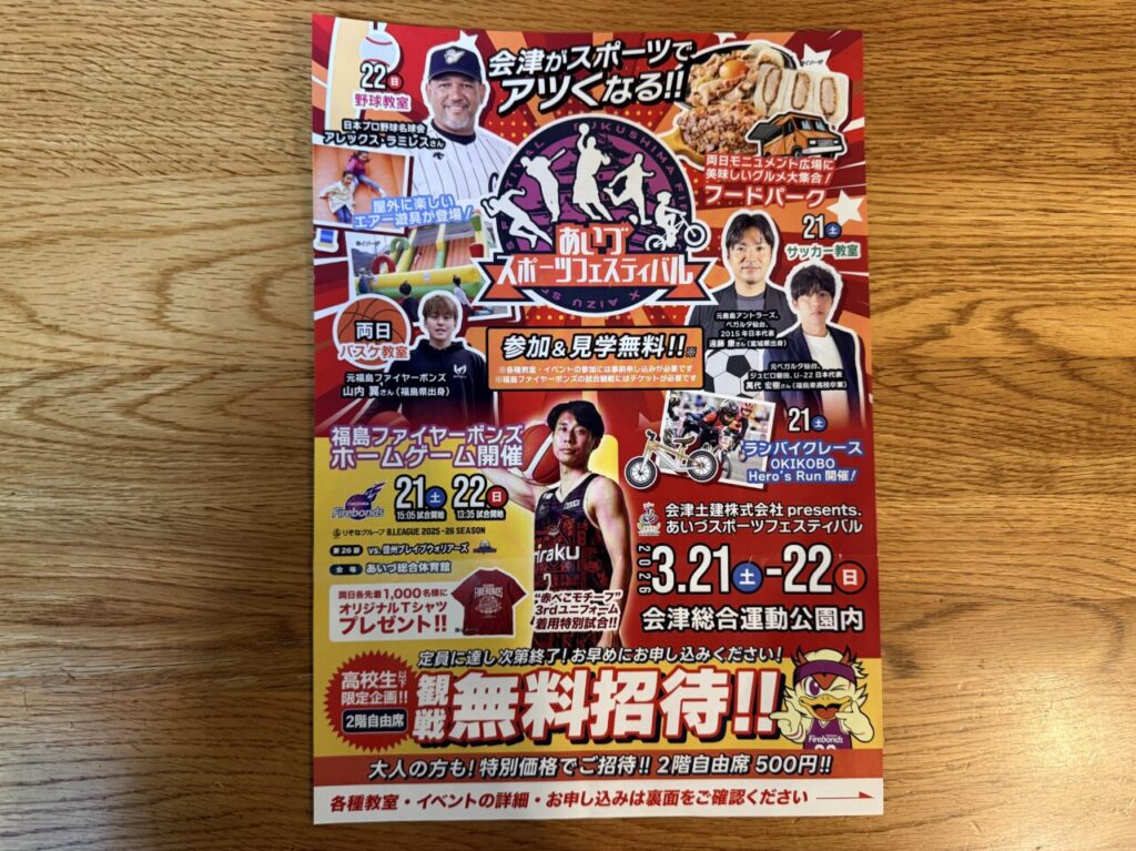【会津若松市】2026年3月21日(土)と22日(日)の2日間で「あいづスポーツフェスティバル」が開催されます。